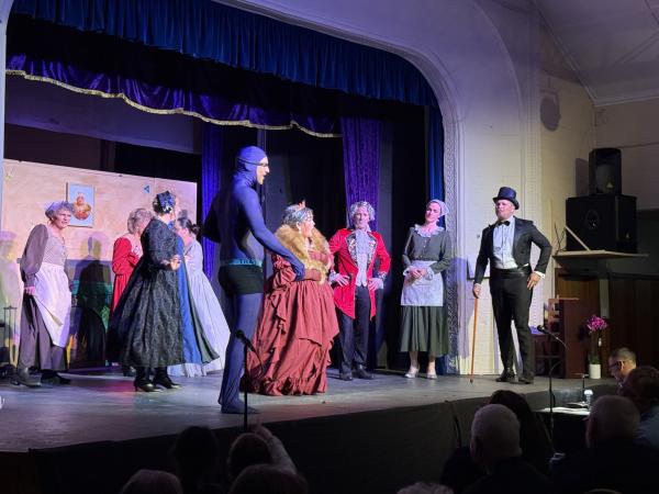 The cast are rehearsing Cinderella. The efforts of the various characters in trying to convince the ghost that Cinderella is a Melodrama and not a pantomime, cause some hilarious situations